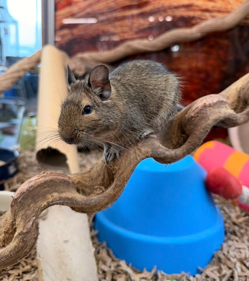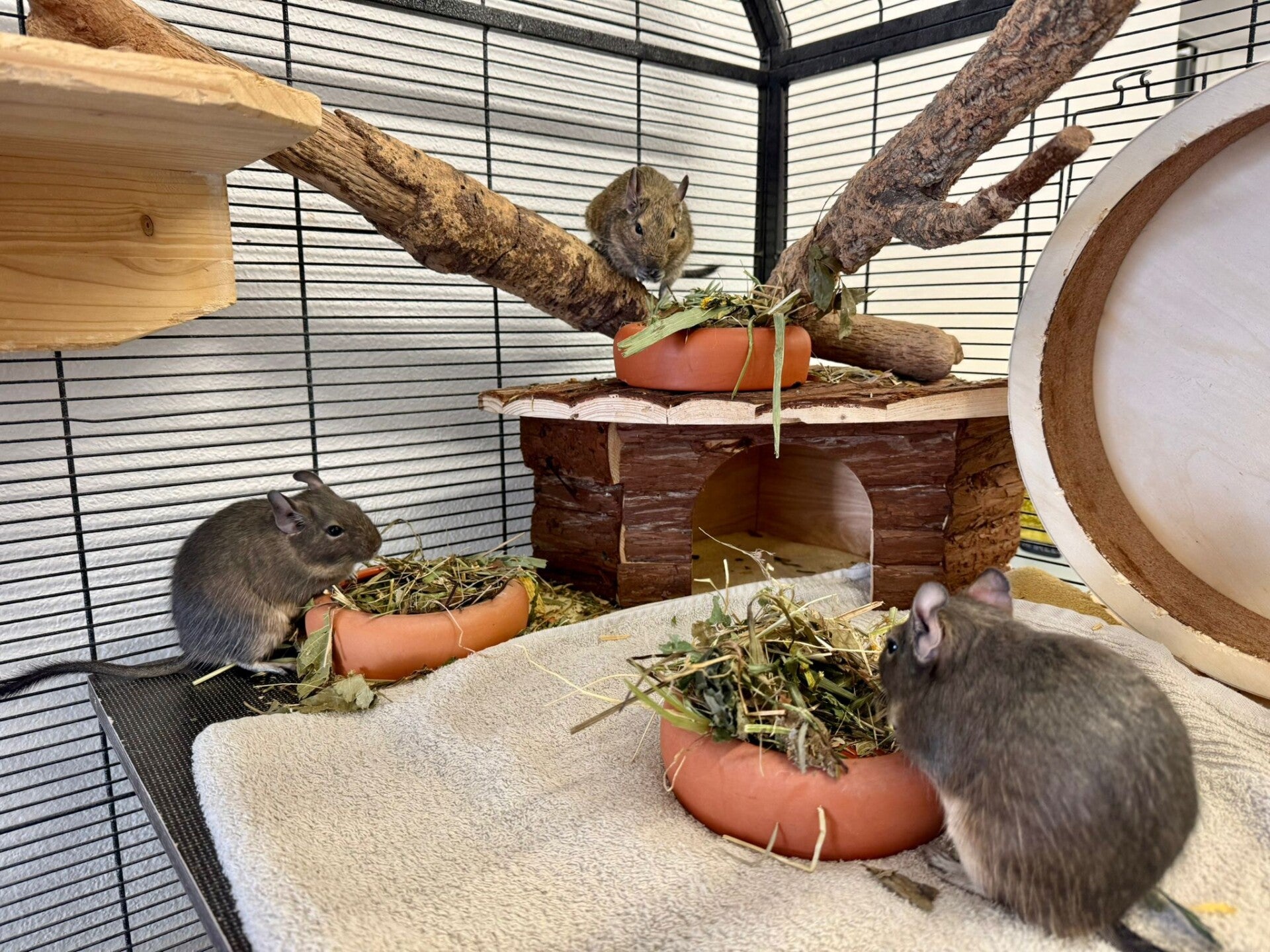 Degoes zijn extreem actieve, klimmende en springende groepsdieren. Ze hebben daarom ruimte én hoogte nodig, met meerdere stevige plateaus om de valhoogte te beperken.
